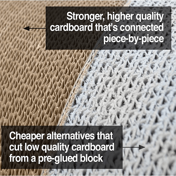 YOU’LL LOVE IT: Made of recycled cardboard, non-toxic corn starch glue. Attractive design, neutral colors. Recommended to save your furniture as cats prefer the feel of cardboard. Happy cat = happy you . .